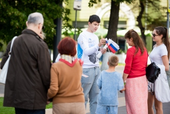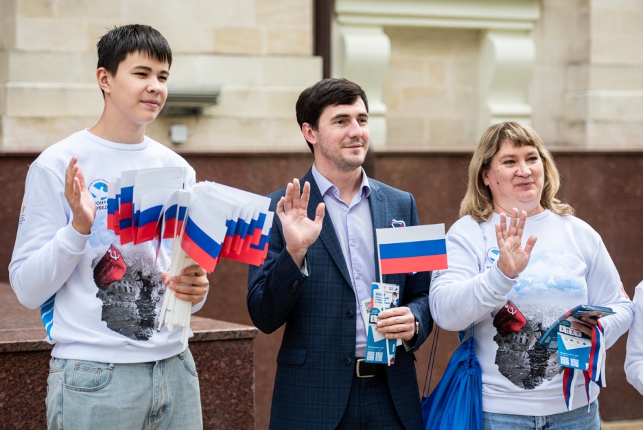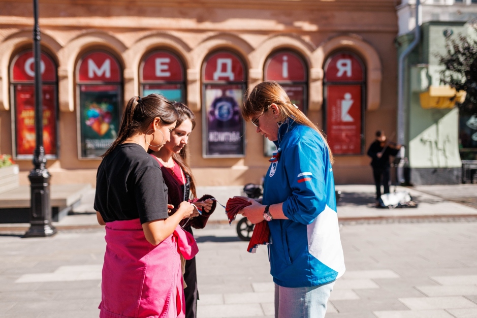 Волонтёры Победы Самарской области, активисты «Движения Первых» и воспитанники военно-патриотического клуба «Патриот» раздали жителям города ленты триколор, символизирующие нашу гордость и единство. Ребята рассказывали прохожим о значении лент, их символике — истории, культуре и духе народа. Радостные лица и искренние улыбки горожан сделали этот день особенным.