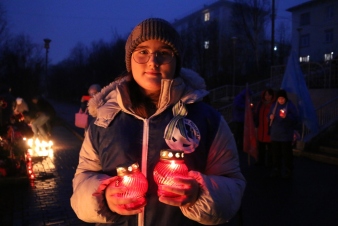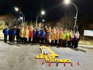 Вечером, когда полярный горизонт окрасился мягким сумраком, тысячи свечей вспыхнули ярким светом, складываясь в мощный символ: «Север помнит». Огонь, трепещущий в ночи, напомнил всем собравшимся о подвигах героев прошлого, чья смелость и мужество спасли наше Заполярье ровно 81 год назад.