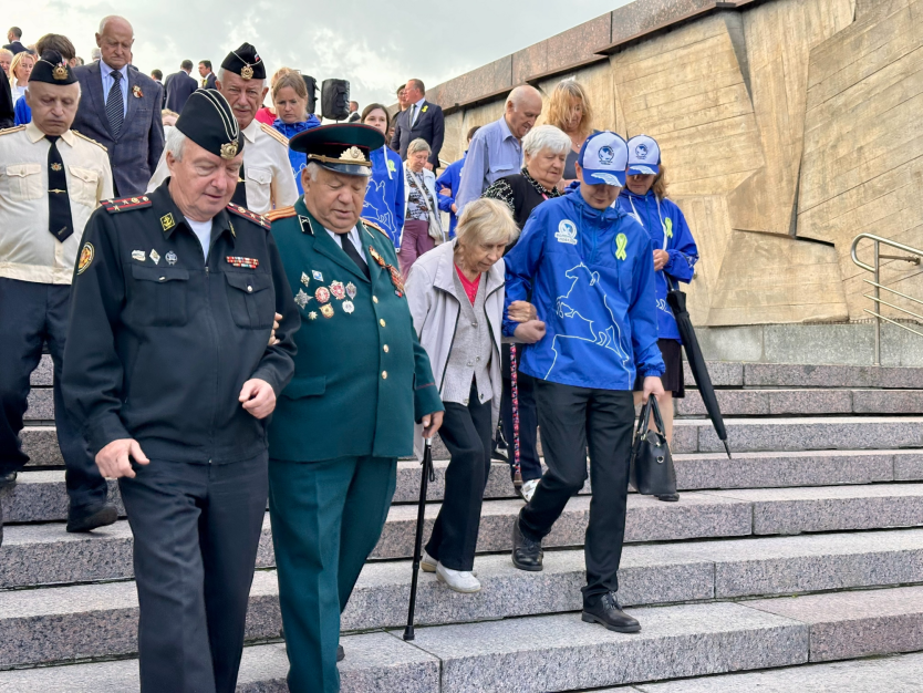 Волонтёры Победы сопроводили ветеранов Великой Отечественной войны и жителей блокадного Ленинграда во время торжественно-траурной церемонии возложения цветов к Монументу героическим защитникам Ленинграда на Площади Победы.