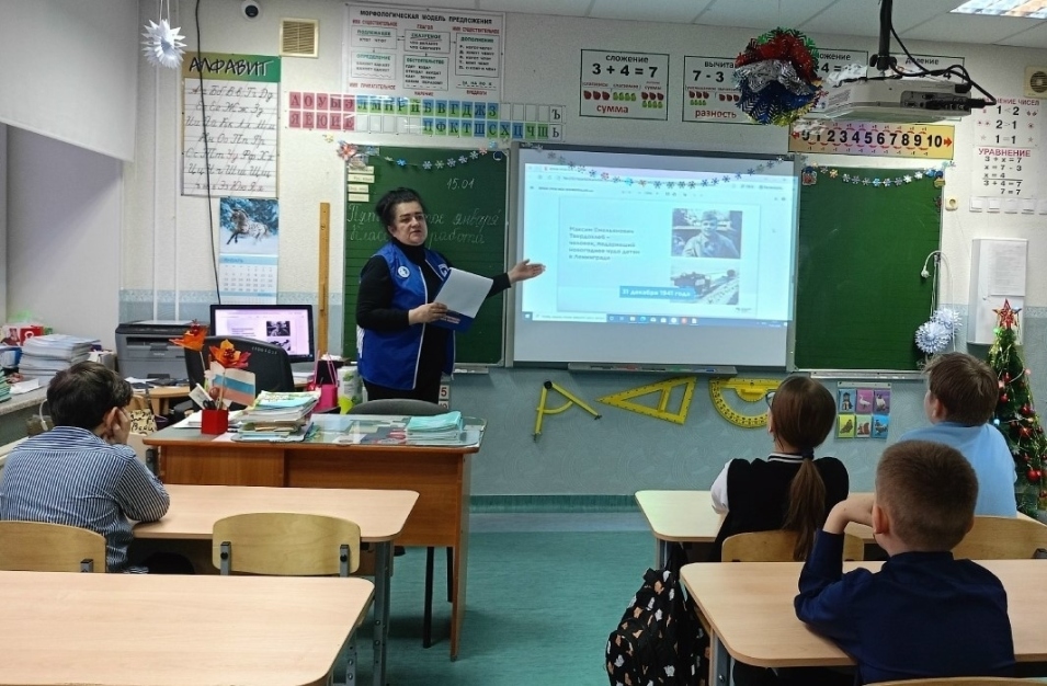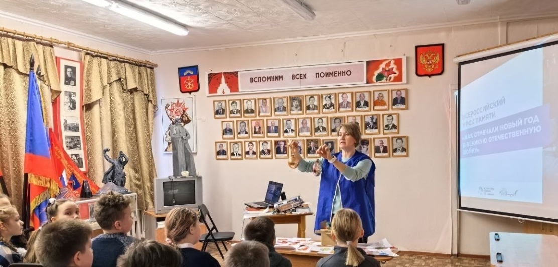 Волонтёры Победы ЗАТО город Заозёрск провели Всероссийский урок памяти «Как отмечали Новый год в Великую Отечественную войну» для обучающихся 4Д класса школы № 289. Добровольцы подготовили содержательную программу, включающую лекторий и видеоматериалы, которые помогли школьникам глубже понять атмосферу суровых лет Великой Отечественной войны.