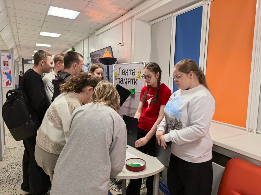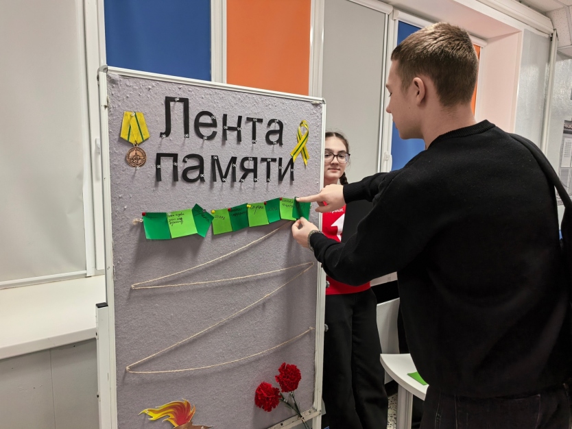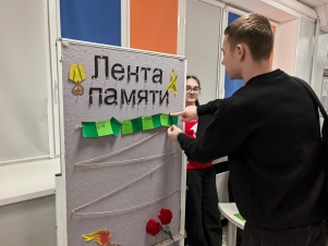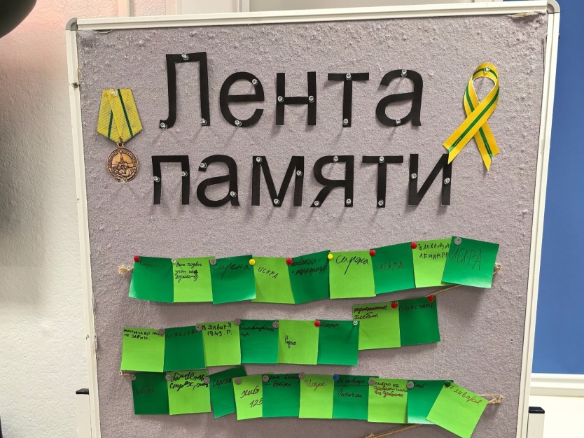 Каждый участник разместил свой листочек с записями на общем стенде. Постепенно сложилась настоящая «Лента памяти» — визуальная летопись чувств и знаний. Композиция была выполнена в цветах медали «За оборону Ленинграда», которые символизируют Победу и жизнь.