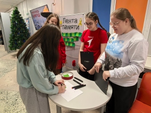 Ко Дню прорыва блокады Ленинграда активисты школьного отряда «Волонтёры Победы» школы № 1 ЗАТО п.Видяево провели для учеников и педагогов информационно‑просветительскую акцию «Лента памяти».