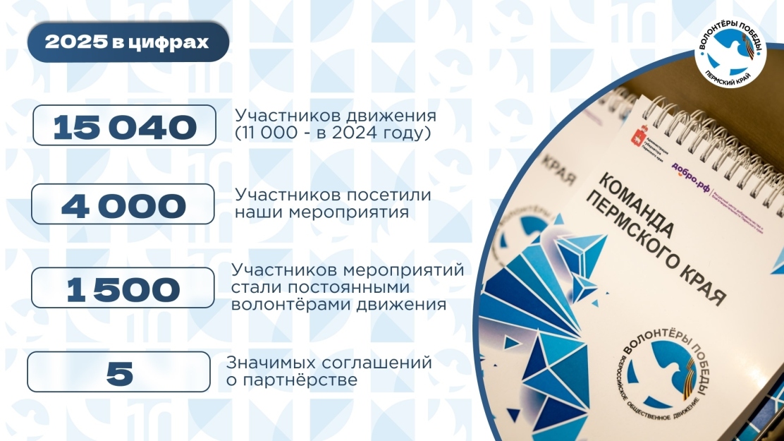 2025 год стал для Движения по‑настоящему знаковым. Вместе со всей страной и миром мы с особым трепетом отмечали 80‑летие Великой Победы, отдавая дань уважения защитникам Отечества — прошлого и настоящего. Это был год, наполненный важными делами, теплыми встречами и тысячами историй, которые мы бережно храним и передаём.