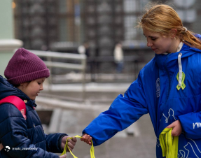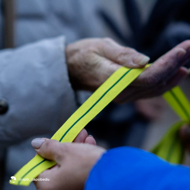 У станций метро «Гостиный двор», «Невский проспект» и «Адмиралтейская» добровольцы рассказывали об истории символа и раздавали горожанам ленты.
