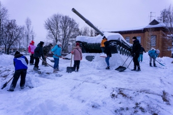 Добровольцы вместе с неравнодушными жителями вышли на улицы, чтобы расчистить снег у мемориалов и памятников воинов, погибших в годы Великой Отечественной войны.