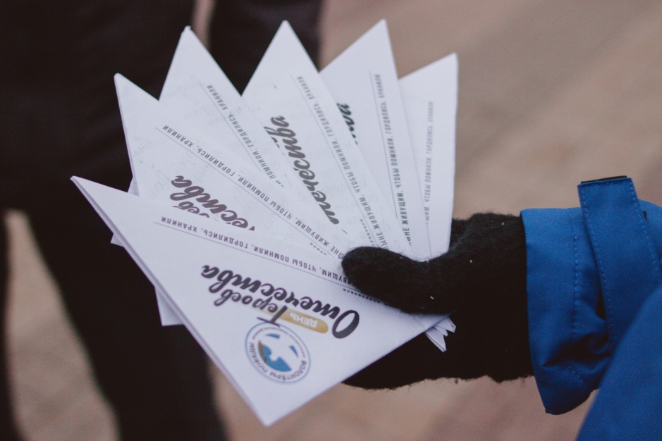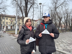 О мужестве защитников Отечества рассказали и за рубежом. Акция Волонтёров Победы прошла на улицах Кыргызстана. Добровольцы Движения предлагали прохожим ознакомиться с биографиями Героев.
