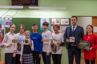 Встреча завершилась торжественным вручением игр-лото директору гимназии Акманову Азату Азаматовичу. Теперь ученики могут приходить в класс и играть в игру, тем самым повышая знания об истории нашей страны и развивая память и мелкую моторику.