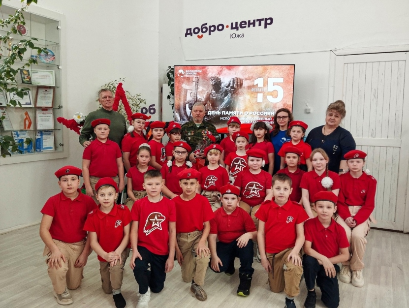 В преддверии Дня памяти о россиянах, исполнявших служебный долг за пределами Отечества, добровольцы Южского района провели встречу юнармейцев с участником Афганской войны. Игорь Геральдович Девятов рассказал ребятам о тяжёлых боях в республике, о своей службе, о командирах и сослуживцах, показал фотографии тех лет. Школьники внимательно слушали Героя, и никто не остался равнодушным к воспоминаниям нашего земляка.