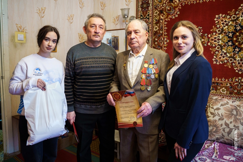 В преддверии 23 февраля Волонтёры Победы Воронежской области вместе с председателем Коминтерновского района Игорем Викторовичем Субач отправились с важной миссией — поздравить тех, чьё детство опалила война. Добровольцы навестили Михаила Семёновича Чарикова. За его плечами — нелёгкая доля ребёнка войны, когда вместо беззаботного детства были лишения, потери и трудные годы восстановления.