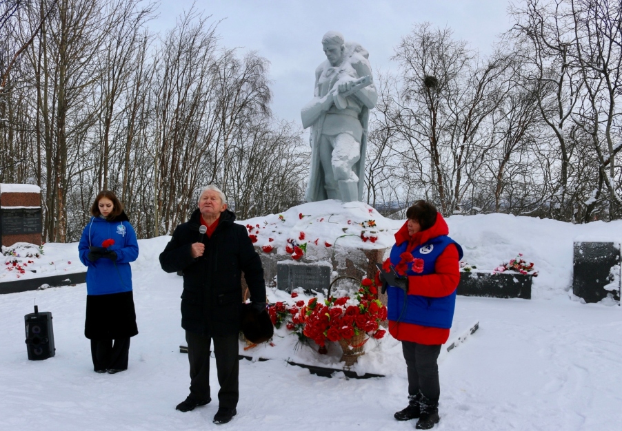 На Аллее Славы состоялся митинг, посвященный Дню защитника Отечества, организованный Волонтёрами Победы ЗОО «Мой город» Печенгского округа. На митинге присутствовали волонтеры и школьники, председатель Совета депутатов Печенгского округа Любовь Черепанова, представители ПРНОО «Муста-Тунтури — памяти защитников полуостровов Рыбачий и Средний», клуба «Ветеран». Открыла митинг председатель ЗОО «Мой город» Наталья Вепринцева. Юрий Александрович Кобяков, выступая, сказал, что печенегская земля хранит память о героях Заполярья и обо всех воинах — защитниках нашего Отечества во все его времена. Этим и держится страна, наша Россия! В конце митинга состоялось возложение цветов к плитам и памятнику воинского мемориала.