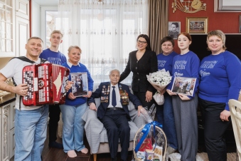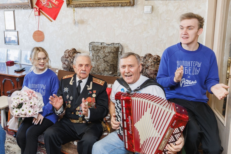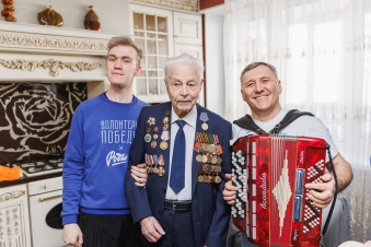 Волонтёры пришли к ветеранам с цветами, подарками и детскими письмами, написанными в рамках международной акции «Письма Победы». Волонтёры исполнили для ветеранов песни военных лет.