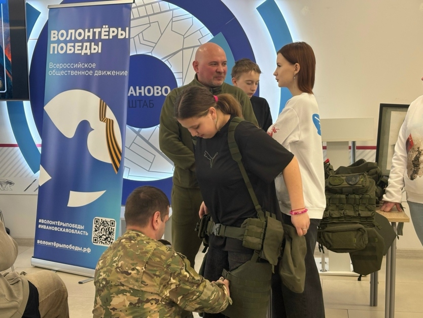 В Штабе общественной поддержки прошла встреча руководителя Союза добровольцев Владимира Крупина, ветерана Специальной военной операции и волонтёра, проходящего обучение на оператора дронов, со школьниками города Иваново.