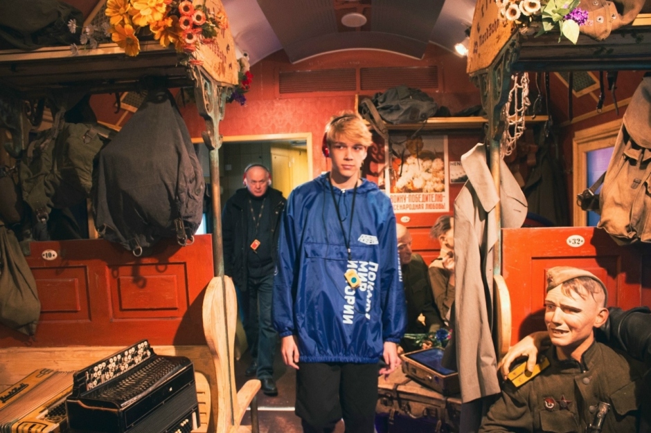 Поезд, проводя посетителей по десяти тематическим вагонам, каждый из которых посвящен отдельному периоду 1940-х годов — от эвакуации, жизни в окопах, блокады, концлагерей до долгожданной встречи Победы, погружал каждого посетителя в атмосферу тех страшных лет.