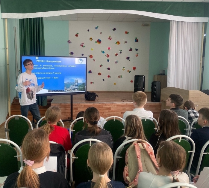 Волонтёры Победы провели интеллектуальную игру «Из Крыма с любовью», посвящённую воссоединению Крыма и Севастополя с Россией, для учащихся школы №14 города Иваново.