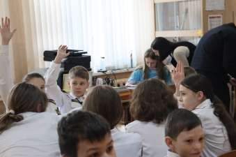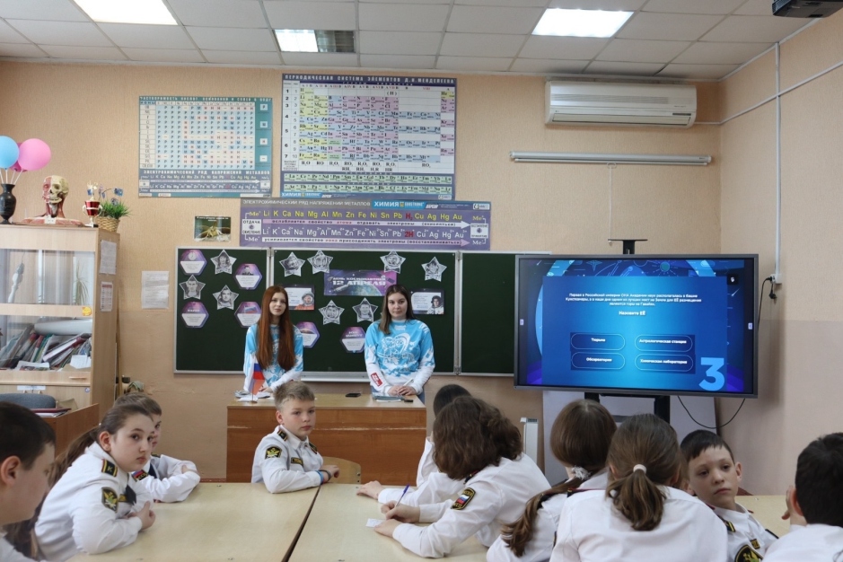 Волонтёры Победы совместно с УФССП России по Курской области провели Всероссийскую историческую интеллектуальную игру «КОСМОС РЯДОМ» в школе №12 города Курска.