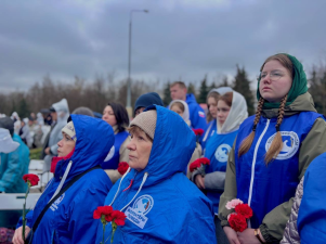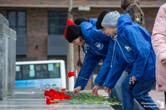 Также сегодня в Москве волонтёры провели памятный митинг у монумента «Трагедия народов» на Поклонной горе и возложили цветы.