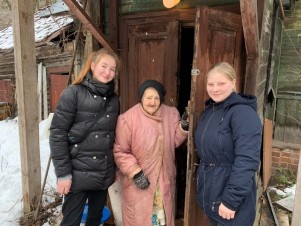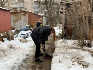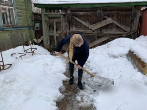 Волонтеры отправились к Маргарите Александровне Миловидовой. Чтобы женщине было легче передвигаться по огороду, они привели в порядок тропинки: убрали снег и наледь. Также ребята просто поговорили с Маргаритой Александровной