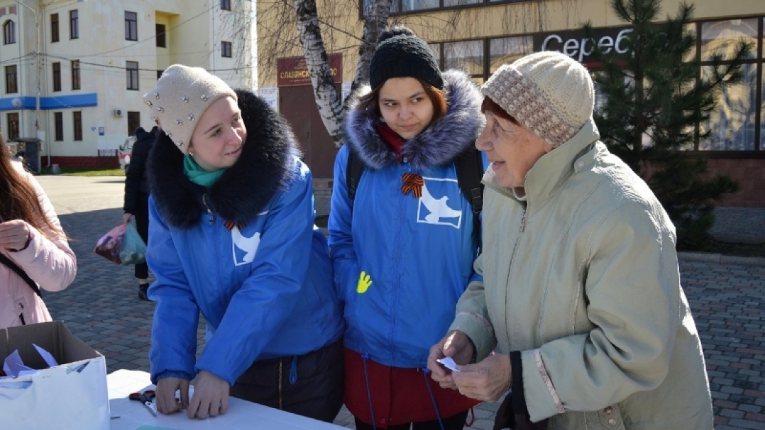 Ребята раздали георгиевские ленточки, а также провели мастер-класс для всех желающих по изготовлению оригами голубей, как символа мира, чистоты и безмятежности.