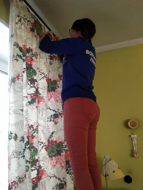 Активисты помогли помыть полы, протереть пыль и повесить занавески. Марфа Васильевна выразила огромную благодарность волонтерам за помощь и пожелала им дальнейших успехов в работе.