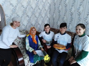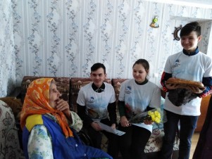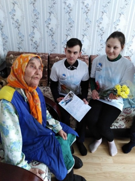 Волонтеры Победы вручили им букет цветов, праздничный пирог в честь 8-го Марта, а так же торжественно вручили письма Победы. В своих посланиях подрастающее поколение пожелало ветеранам крепкого здоровья и долгих лет жизни.