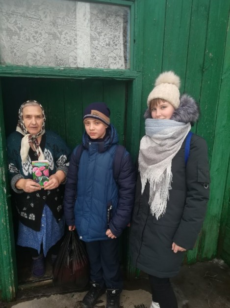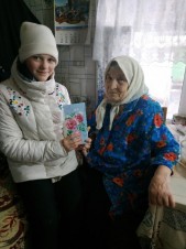 Ребята пожелали здоровья женщинам, которые во время Великой Отечественной войны будучи маленькими девочками 8-15 лет работали в колхозе, помогая ковать Победу, и благодарили за мирное небо над головой.