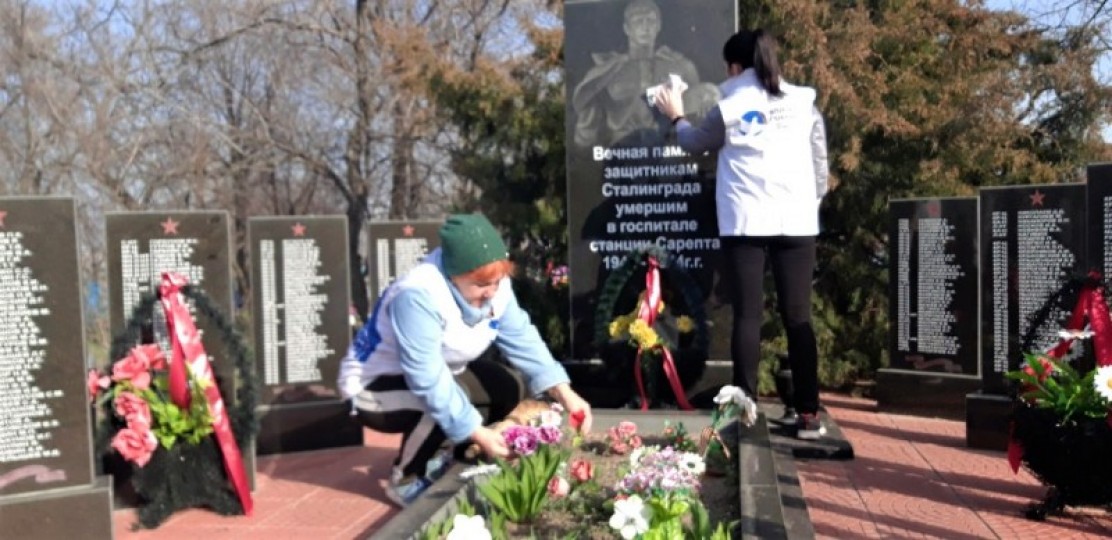 В марте Волонтеры Победы ПМК "Фортуна" МУ "Форум" Красноармейского района организовали и провели субботник на мемориальном памятнике "Защитникам Сталинграда умершим в госпитале станции Сарепта 1942-1944 г."
