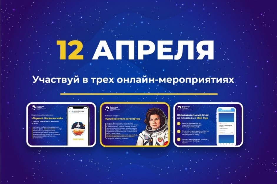 Также каждый участник мог принять участие во Всероссийском онлайн-квесте «Первый. Космический» через чат-бот в сообществе Движения «Вконтакте» и пройти специальный образовательный блок на платформе Skill Cup, в котором были предложено узнать больше о космической сфере и о соответствующих достижениях Советского Союза и России.