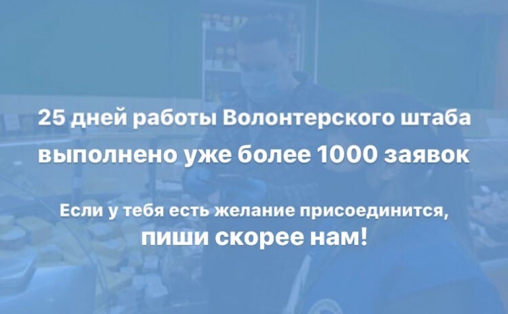 За 25 дней работы Волонтёрского штаба выполнено уже более 1000 заявок, волонтёры выезжают за продуктами, лекарствами и прочими вещами, в которых нуждаются люди. Доставляют всё необходимое прямо до двери, соблюдая необходимые меры предосторожности.