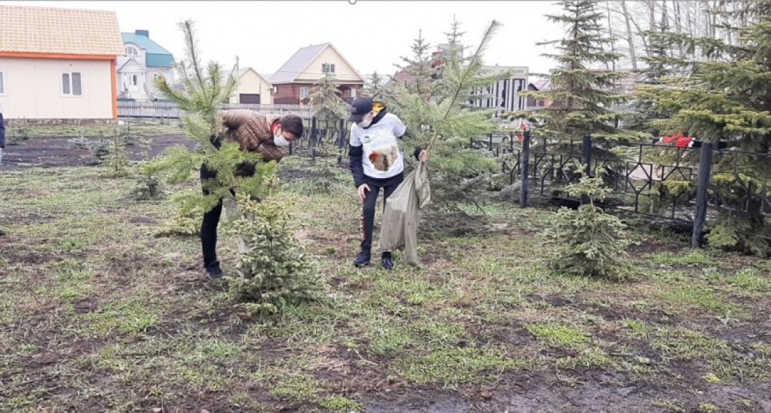 В Стерлитамакском районе ребята высадили 7 саженцев сосны в с. Новая Отрадовка.