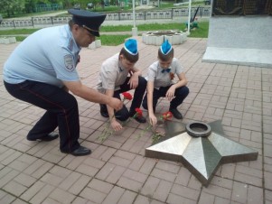 Каждый год гремит Победный салют во всех городах нашей Родины. Каждый год в память о погибших на той жестокой войне проходит Минута молчания. В эту минуту люди молча стоят, склонив головы, вспоминают погибших и мысленно благодарят их за мирное небо. И каждый год все люди нашей страны возлагают цветы к памятникам воинов Великой Отечественной войны. В г. Белокуриха совместно с сотрудниками ОГИБДД провели возложение цветов к памятнику Победы, как частичку своего сердца к памятнику, в знак благодарности и вечной памяти Великому подвигу павших солдат.