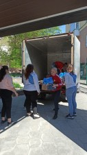 Ребята принимали, грузили, упаковывали подарки! Подготавливали Георгиевские ленточки для ветеранов!