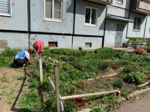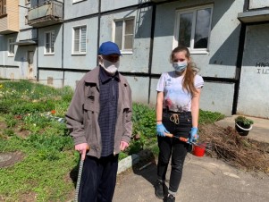 Волонтеры Победы, соблюдая все меры предосторожности, навели порядок, чтобы ветераны войны встретили День Победы в красивых палисадниках