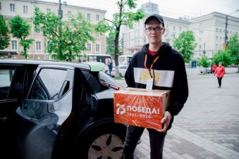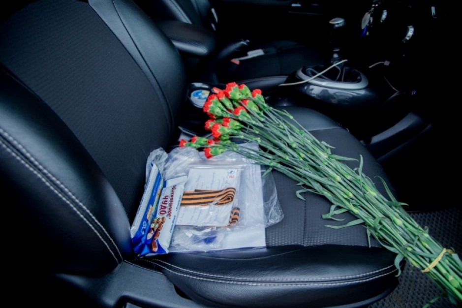 Также 60 добровольцев, которые присоединились к проекту «Вам, родные», вместе с продуктовыми подарками вручают георгиевские ленты, гвоздики и открытки со словами благодарности от жителей региона. Все предметы были предварительно продезинфицированы.