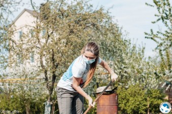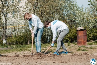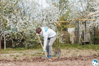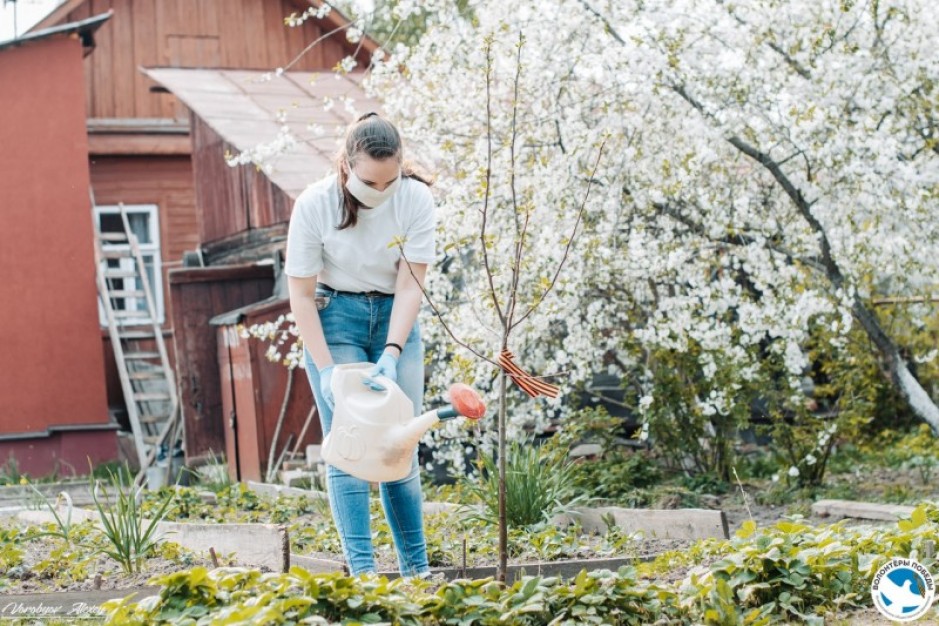 Волонтеры Победы, вооружившись лопатами и граблям, отправились в гости к ветерану Великой Отечественной войны Юрию Ивановичу Гусеву и его супруге Зое Георгиевне, чтобы помочь им в работе на огороде.