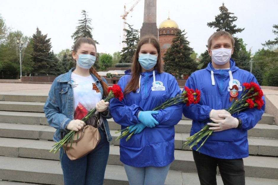 В период самоизоляции к церемонии, приуроченной к 75-й годовщине Великой Победы, впервые не смогли присоединиться ветераны. Вместо них в возложении цветов приняли участие волонтеры.
