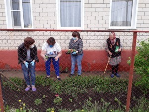 Добровольцы высадили на придомовых участках ребенка войны Веревкиной Инны Федоровны и участника Великой Отечественной войны Попелкова Ивана Андреевича саженцы петуньи.