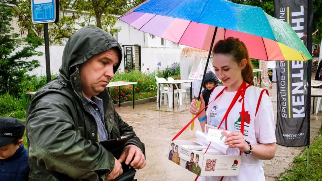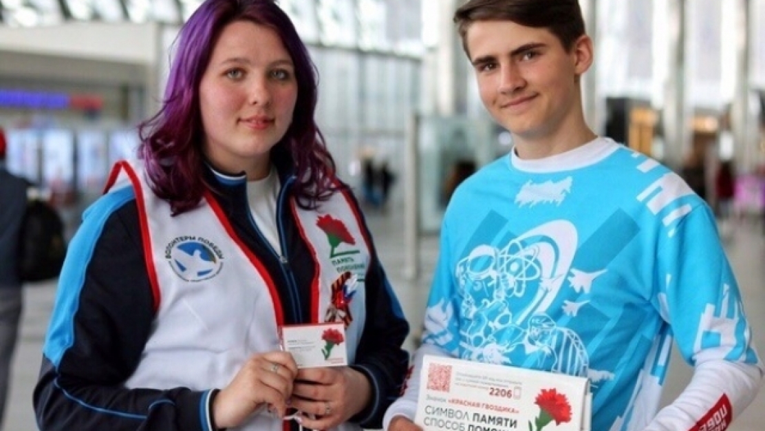 Участники всероссийского движения «Волонтеры Победы» в парках, скверах и центральных улицах городов и сел Крыма проводят акцию «Красная гвоздика». Уже второй год совместно с Благотворительным фондом «Память поколений» волонтеры распространяют этот всенародный символ памяти о павших героях и благодарности ныне живущим ветеранам боевых действий, которые сражались за наше Отечество. Средства от продажи и распространения значка направляются на оказание высокотехнологичной медицинской помощи ветеранам боевых действий.