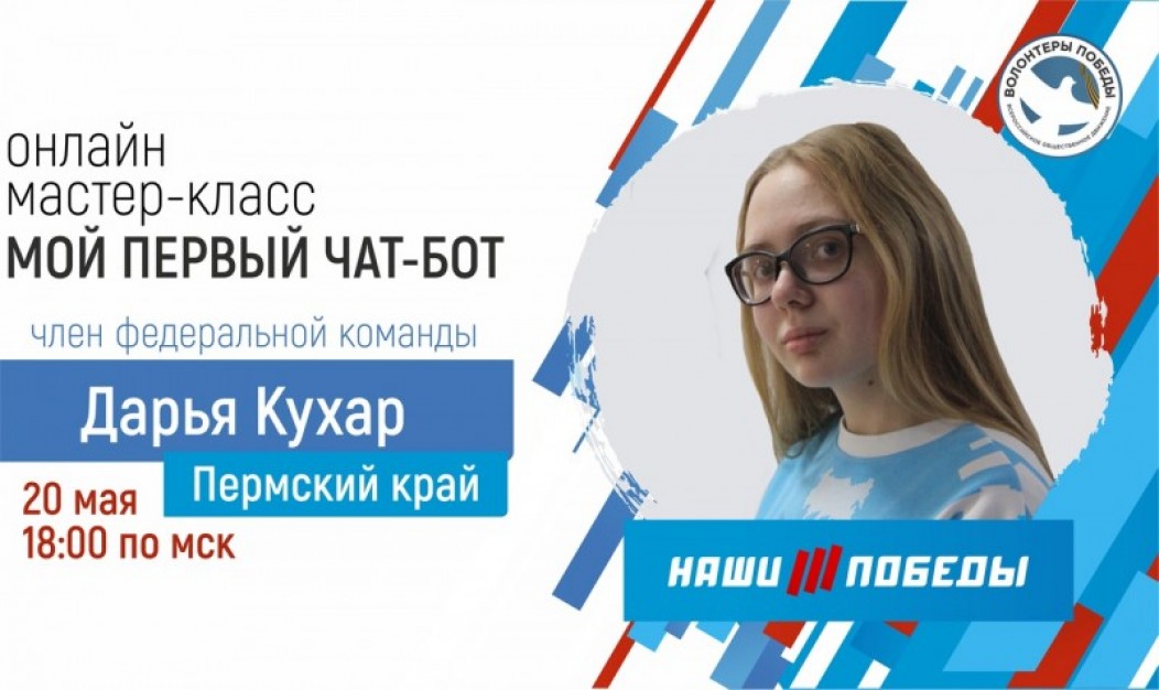 Для всех желающих научиться делать чат-боты, прошел мастер-класс от члена федеральной команды "Наши Победы" - Дарьи Кухар.