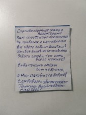 Конечно же, такая тяжелая ежедневная работа не остается незамеченной нашими дорогими ветеранами. Волонтеры отмечают, что пожилые люди приятно удивляются активной гражданской позиции молодежи и искренне благодарят за необходимую поддержку. Одна из пожилых женщин, Галина Васильевна, написала трогательное стихотворение в благодарность добровольцам, которые продолжают творить добро даже в период пандемии.