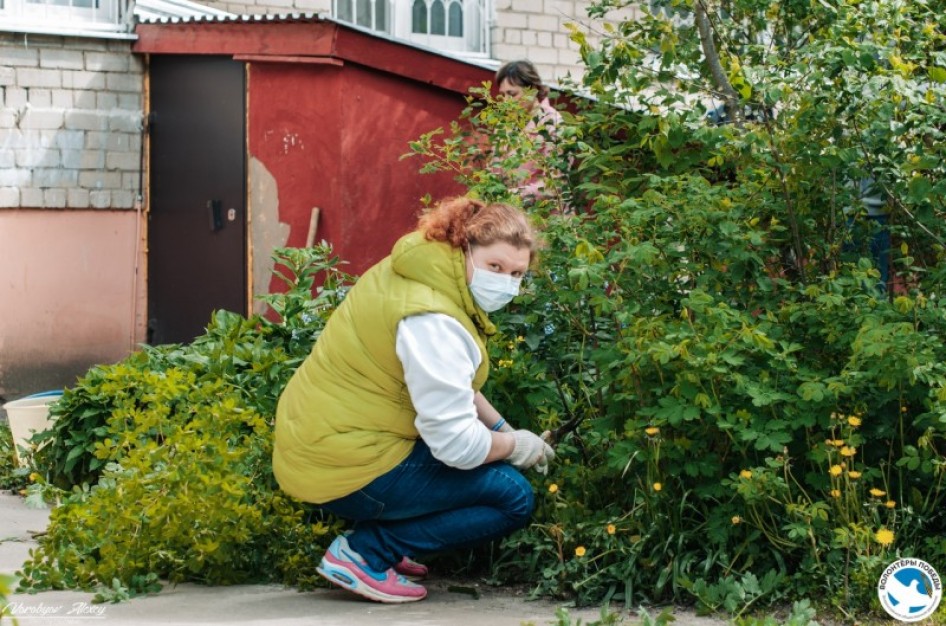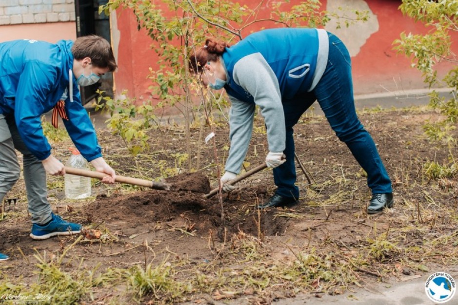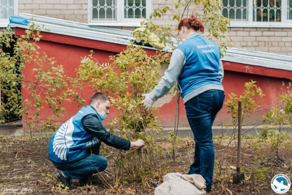 #ВолонтерыПобеды убрали старые кустарники, а в нынешние выходные с соблюдением всех мер предосторожности высадили вишню, которая будет украшать двор ветерана, не принося при этом никаких неудобств.