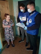 Волонтеры Победы в праздничный день нашли способ поздравить односельчан – они разнесли поздравительные послания и триколоровские ленточки по почтовым ящикам многоэтажек.
