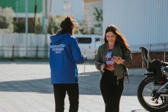 Акция стартовала 8 июня у ТЦ «Меркурий». Всего в ходе Акции было роздано 200 трехцветных лент.