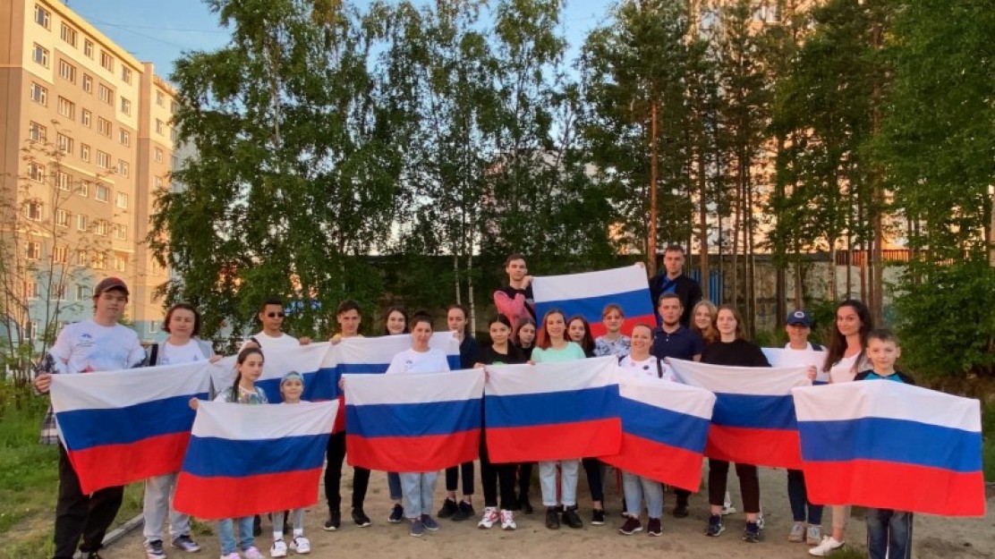 В преддверии Дня России Ноябрьские Волонтёры Победы решили порадовать наших жителей необычным флешмобом. В окнах многоэтажки красовались бело-сине-красные флаги. С наступающим праздником тебя, великая наша страна!