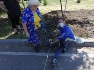 Волонтеры Победы высадят цветы на придомовом участке бывшей малолетней узницы фашистских концлагерей Лариса Ивановна Панеченко. Сегодняшний день активисты посвятили подготовке основания клумб.