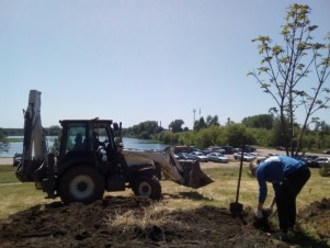 В первый день своей работы ребята заняли подготовкой площадки под будущие цветники. Для этого пришлось активно поработать, а именно: выкорчить старые пни, убрать траву, завезти и разровнять новый грунт. После того, как спадет жаркий летний зной, ребята вернуться чтобы высадить цветы и кустарники, которые еще долго будут радовать ветерана своим цветением.
