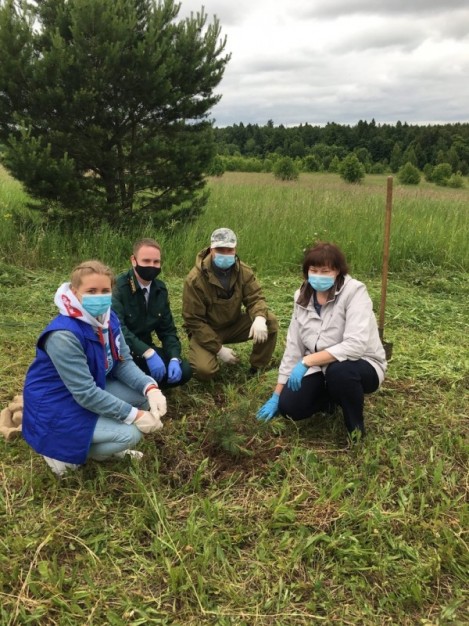 Сотрудники Минприроды Удмуртии и Управления Федерального казначейства по Удмуртской Республике совместно с Волонтерами Победы продолжили закладку памятной кедровой аллеи.