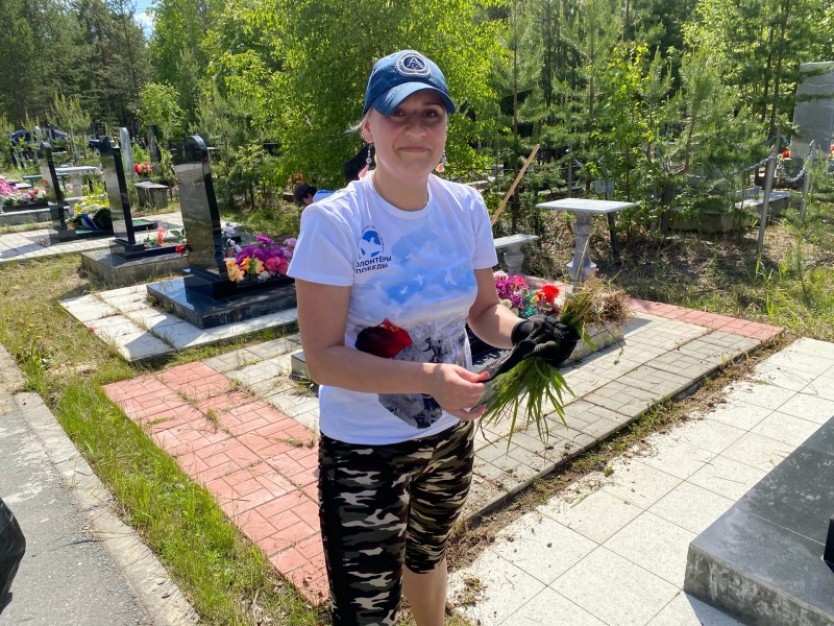 — У меня есть личный ресурс (время, здоровье, транспорт и т. д.), который я хочу и могу использовать в полезной деятельности. Быть с теми, кто оказался в трудной жизненной ситуации и нуждается в помощи или внимании. С некоторыми ветеранами, чьи захоронения мы сегодня убирали, я была знакома. Мы помогали им в быту, они делились историями военных лет. Ветераны живы в нашей памяти, — делится впечатлениями руководитель отряда «Волонтеров Победы» 12-й школы Наталья Макшова.