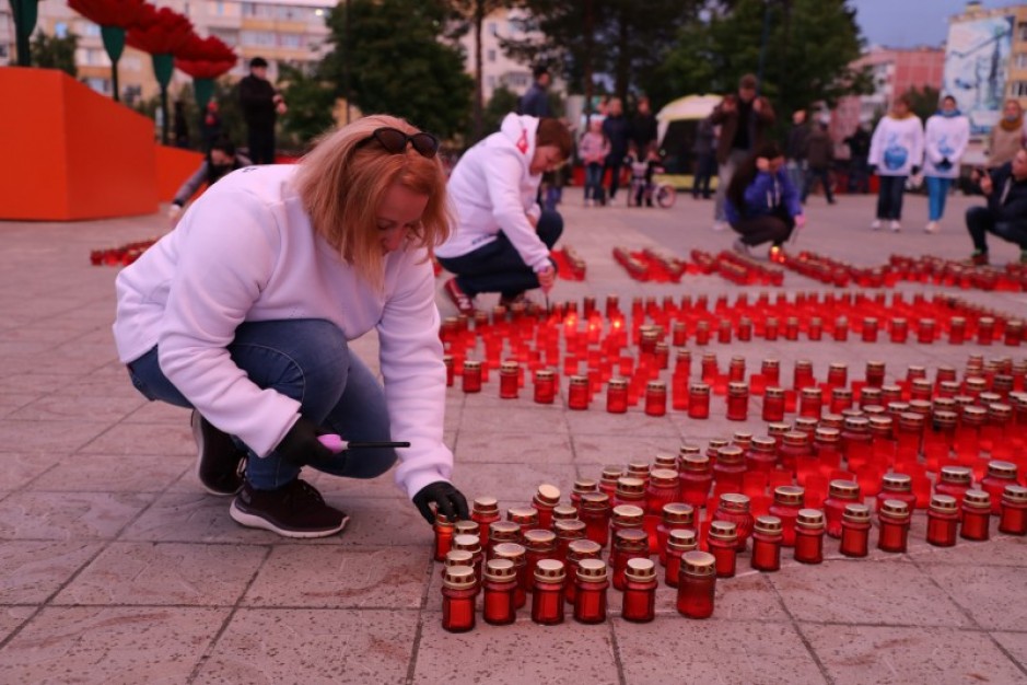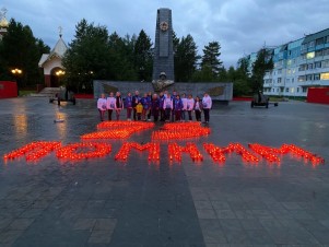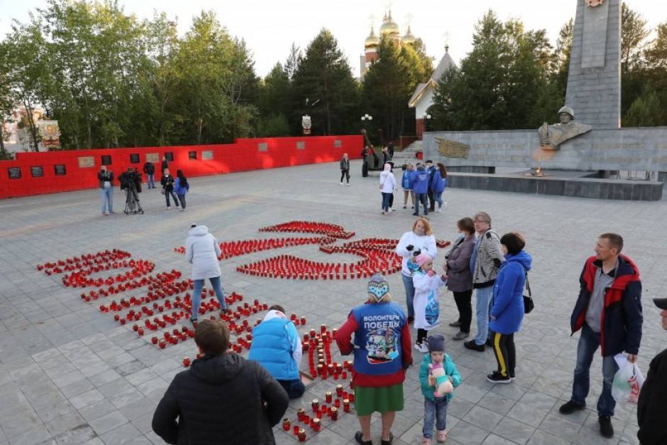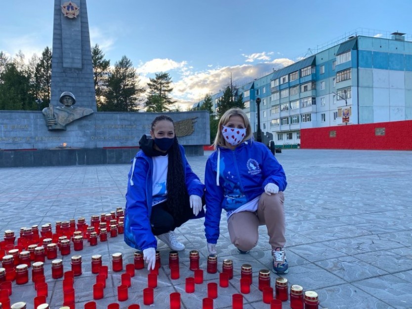 На памятном комплексе защитникам, павшим в Великой Отечественной войне" в городе Ноябрьск Волонтеры Победы, УДСМ I Ноябрьск, центра "Доверие" и депутаты городской думы зажгли около 3000 свечей. Участники Акции с 2009 года ежегодно накануне Дня памяти и скорби 22 июня зажигают свечи в честь 27 миллионов погибших в Великой Отечественной войне 1941–1945 гг. и всех защитников Родины.