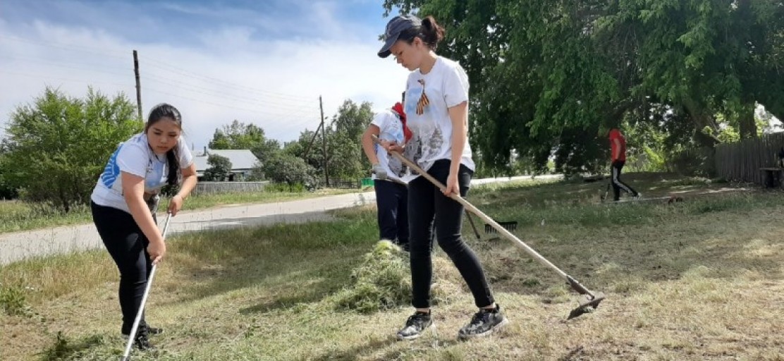 Команда под руководством Самата Битенова помогает пожилым людям своего села Новосельское. В условиях пандемии ребята еще не могут навещать своих старших друзей, поэтому оказывают помощь на придворовых территориях.