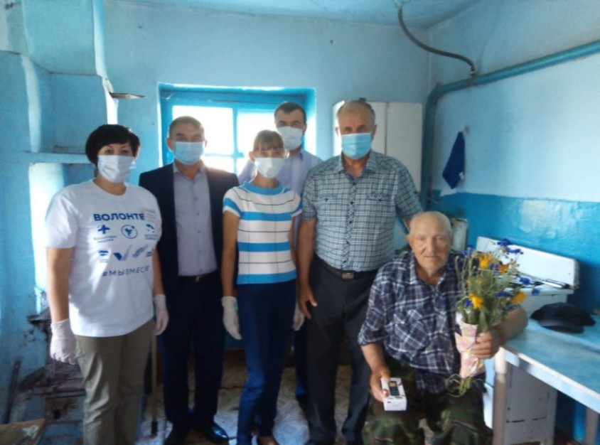 Волонтёры совместно с Красиловым Вячеславом Марковичем (Глава Кытмановского района), Титовым Владимиром Анатольевичем (депутат Кытмановского районного совета народных депутатов, член партии «Единая Россия»), Корчагиной Анной Артуровной (Председатель комитета по культуре, спорту и делам молодёжи, член партии «Единая Россия»), Быковченко Владимиром Викторовичем (Глава Червовского сельского совета), Вялкиной Ольгой Леоновной (секретарь Червовского сельского совета) вручили телефон БАРДЫШЕВУ МИХАИЛУ ВАСИЛЬЕВИЧУ